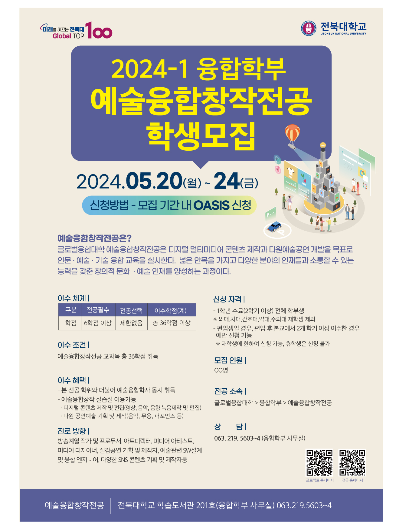 [융합학부] 2024학년도 2학기 예술융합창작전공 이수대상자 모집